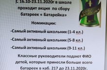 С 16 по 23 ноября в школе проходит акция по сбору батареек "Батарейка".