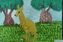 Ученица 7А класса с работой под названием "На полянке кенгуру" принимает участие во Всероссийском детском конкурсе рисунка и прикладного творчеста "Эти забавные животные".