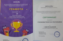 2В (кл.рук. Степанова А.А.) занял 1 место по школе по рейтингу Учи.ру по итогам октября 2019 года. Молодцы!