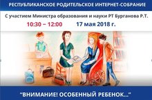 17 мая 2018 г. с 10.30 до 12.00 на сайте киу.рф будет проходить online - трансляция "Внимание! Особенный ребёнок..." (Об особенностях воспитания и обучения детей с ограниченными возможностями здоровья). Задайте свой вопрос по адресу: roditelirt@mail.ru