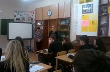 В рамках месячника по профилактике идеи терроризма и экстремизма 6 апреля в школе прошла встреча с сотрудником ПДН ОП "Сафиуллина" Зариповой Н. А. В программу встречи вошли: презентация "Молодежь против экстремизма", беседа "Права школьника", блиц турнир "вопрос-ответ". Участниками стали 8-10 классы.