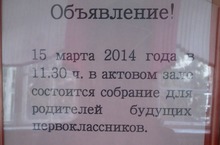 15 марта 2014 года в 11.30 в актовом зале состоится собрание для родителей будущих первоклассников