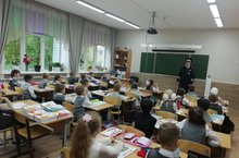 В рамках недели безопасности дорожного движения в школе состоялись встречи с сотрудниками ГИБДД. Первоклассники показали прекрасные знания дорожного движения.
