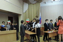 Сегодня, в день конституции РФ, учитель истории Шарафиева Ильсия Амировна со своими практикантами и помощниками из правового отряда"Фемида"в актовом зале школы провели для учащихся 5-х, 6-х классов урок-игру на тему "Коституция РФ ". Учащиеся узнали много нового и интересного, услышали Гимн РФ и РТ, узнали о флаге и гербах России и Татарстана.Победители конкурсов были награждены грамотами и сладкими призами. -