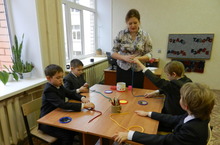 Также гостям семинара было показано занятие кружка ИЗО и технологии, на котором учащиеся 2 А класса осваивали технику вышивки по картону - изонить. -