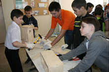 Совместно с сотрудниками казанской городской сети в рамках экологического проекта "Мой город - мой дом", ученики 6-х классов своими руками построили скворечники.
