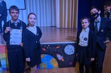 7 апреля прошёл районный этап интеллектуальной игры «Мы и космос», посвящённый 60-летию полёта Ю.А.Гагарина. В игре приняла участие команда нашей школы «Роскосмос»(руководитель Мишурин В.Г.) и заняла 1 место. В ходе игры участниками команды был нарисован и представлен жюри плакат, даны ответы на вопросы викторины, показан отличный результат в проектировании летательных аппаратов. Поздравляем нашу команду с блестящей победой.