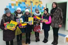 Ученики 7А класса с классным руководителем Натальей Евгеньевной сходили в дом ребенка и вручили подарки детям- сиротам.