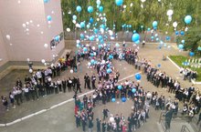 21 сентября по всей России считается днем Мира. В честь этого дня в школе прошла акция "Голубь Мира". Учащиеся всех классов изготовили голубей, прикрепили их к воздушным шарикам и дружно во дворе школы "нарисовали" голубя мира, а затем с криками "Мы за мир" выпустили шарики в небо. Очень красиво получилось. В акции принимали участие и родители и учителя школы. "Мы - за мир во всем мире!!!" -