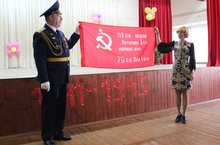 В преддверии праздника Великой Победы школу посетил депутат Альметьевского городского совета, помощник депутата Государственной Думы Агафонов Александр Фёдорович и вручил подарок - копию Красного знами Победы.