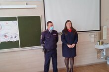 Прошла встреча с инспекторами ГИБДД. Провели беседу по профилактике детского дорожно-транспортного травматизма. Инспектора пожелали детям быть осторожными на дороге.