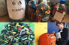 Ученики с 1- 11 кл. собирали батарейки и пластиковые крышки.