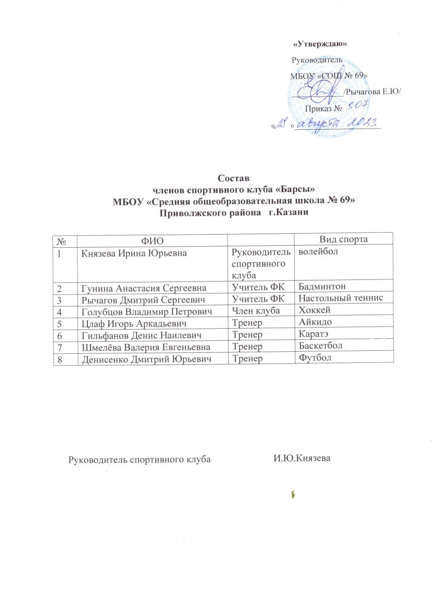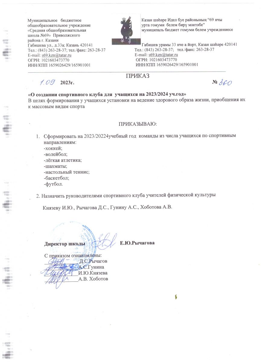 Приказ об организации работы школьного спортивного клуба