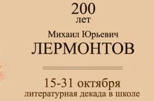 С 15 по 27 октября в школе прошла Лермонтовская декада, посвящённая 200-летию со дня рождения М.Ю. Лермонтова. Были проведены различные мероприятия: уроки "Слово о Лермонтове" ( 5-11 классы), литературное кафе ( 6 классы, уч. Зыкова М.Г.), конкурсы сочинений "Лермонтов в моей жизни" (8-10 классы), конкурсы стенгазет (5-11 классы).Завершилась декада конкурсом чтецов "Люблю Отчизну я...".
