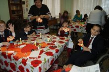 Учащиеся коррекционных классов на занятии «Мастерилка» с педагогами ЦВР Приволжского района.