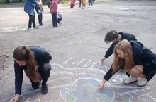 Бүген безнең мәктәптә " Мин акбур белән рәсем ясыйм. Дөньяда тынычлык барысына да кирәк!», Якты, асфальтта рәсем, игелек һәм тынычлык гәүдәләнеше түгел. Балалар, сыйныф җитәкчеләре белән берлектә, үз тирәсенә соры асфальтны тылсымлы сурәтләргә әйләндерделәр.