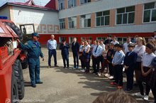 Сотрудники пожарной части с.Корноухово Рыбно-Слободского района организовали в школе для учащихся показ техники и пожарно-технического вооружения. /Балык Бистәсе районы Корноухово авылының янгын бүлеге хезмәткәрләре мәктәптә укучылар өчен янгын сүндерү техникасы һәм янгын-техник коралларын күрсәттеләр.
