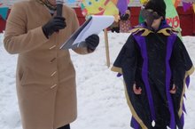 Ведущие праздника шутками да прибаутками призывали детей, родителей и гостей праздника веселиться от души и плясать не жалея ног, чтобы не замёрзнуть.