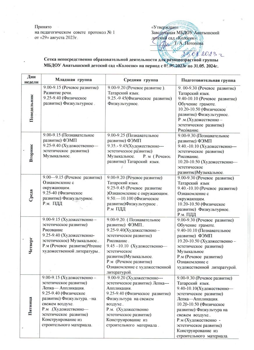 - Сетка занятий на 2023-2024 учебный год