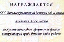 НАШ ДЕТСКИЙ САД НАГРАЖДЕН ГРАМОТОЙ ЗА ВТОРОЕ МЕСТО В КОНКУРСЕ "НОВЫЙ ГОД 2015" В НОМИНАЦИИ "ЛУЧШЕЕ ОФОРМЛЕНИЕ ФАСАДА И ТЕРРИТОРИИ СРЕДИ ДЕТСКИХ САДОВ РАЙОНА!!!!!!