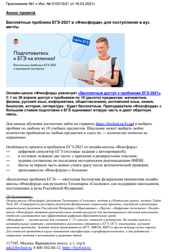 Бесплатные пробники ЕГЭ-2021 в «Фоксфорде» для поступления в вуз мечты 25.03.2021