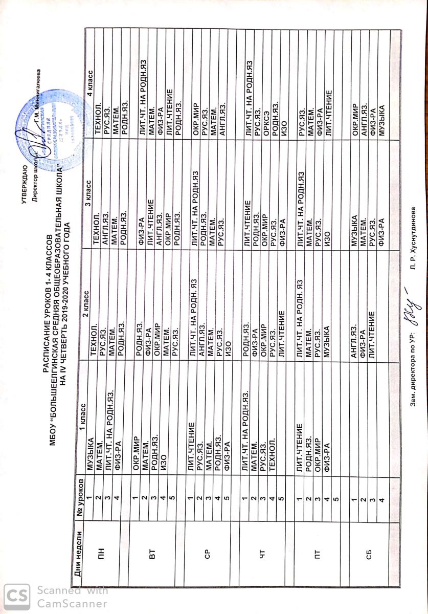 РАСПИСАНИЕ УРОКОВ 1- 4 КЛАССОВ НА IV ЧЕТВЕРТЬ 2019-2020 УЧЕБНОГО ГОДА