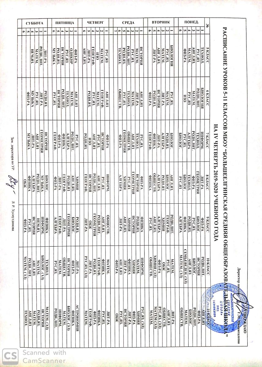 РАСПИСАНИЕ УРОКОВ 5-11 КЛАССОВ НА IV ЧЕТВЕРТЬ 2019-2020 УЧЕБНОГО ГОДА