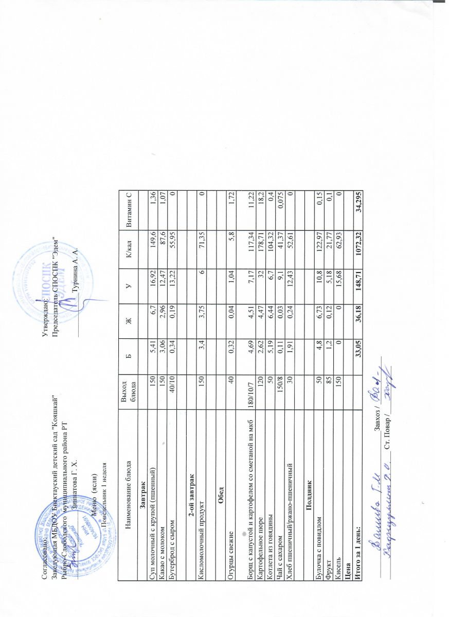 Организация питания в детском саду / Балалар бакчасында туклануны оештыру