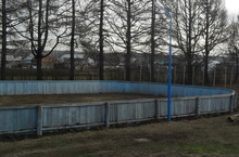 Мәктәп янында оештырылган хоккей коробкасы уенчыларын кабул итәргә әзер, боз гына катырасы калды.