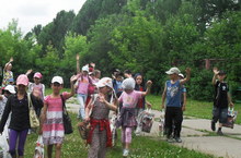 Бүген безгә кунакка "Балалар иҗат үзәге"ннән тәрбиячеләр һәм югары сыйныф укучылары килде. Алар "Сабантуй" лагерена йөрүче укучылар белән таныштылар һәм аларга бик күп төрле хәрәкәтле уеннар өйрәттеләр. Балалар кунаклардан бик канәгать булып калдылар.