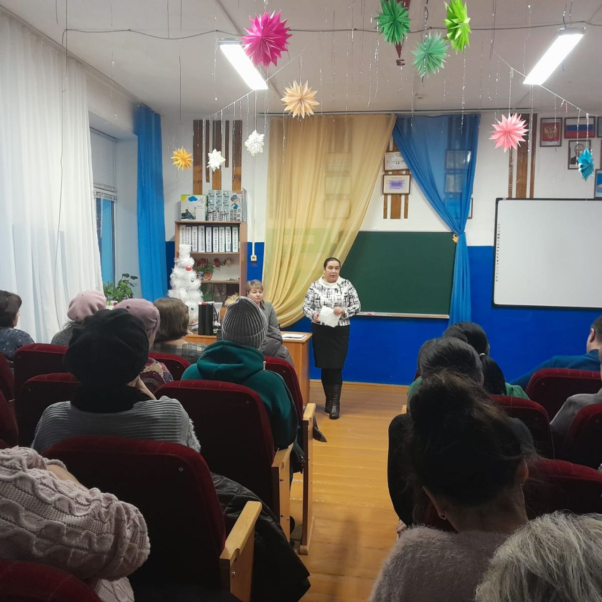 Бүген башлангыч сыйныф укучыларының Яңа ел бәйрәме гөрләп үтте. Быел һәрбер укучы да район хакимияте башлыгы Радик Ислямов тарафыннан бирелгән яңа ел пакетлары алдылар.