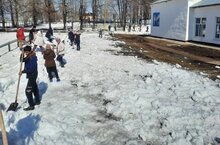 Сегодня состоялся субботник по уборке снега, валяющегося вокруг школы.