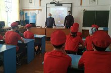 Юнармейцы МБОУ "Биектауская СОШ" в рамках месячника "Оборонно-массовая, военно-патриотическая и спортивная работа" , встретились с выпускником Михайловской Военно - Артиллерийской Академии города Санкт- Петербурга, командиром реактивной артиллерийской батареи 155 отдельной бригады морской пехоты, капитаном