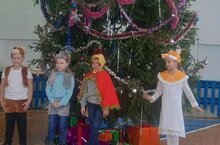 В школе прошел праздник Нового года. Ученики пели, танцевали, рассказывали стихи. На вечеринку пришли родители, бабушки и дедушки, маленькие дети. Дед Мороз никого не оставил без подарков.