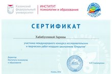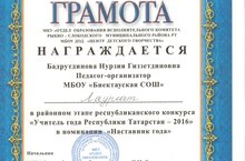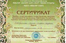 Мәшһүр татар шагыйрәсе Клара Булатова иҗатына багышланган XI "Дулкыннар" бәйгесенең Республика турында катнашып югары нәтиҗәләргә ирешкәне өчен Хәбибуллина З. сертификат белән бүләкләнә.