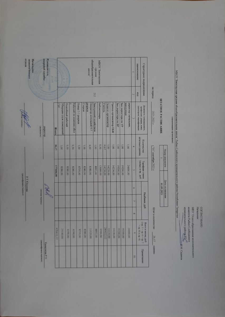 Штатное расписание 2021-2022 уч. г.