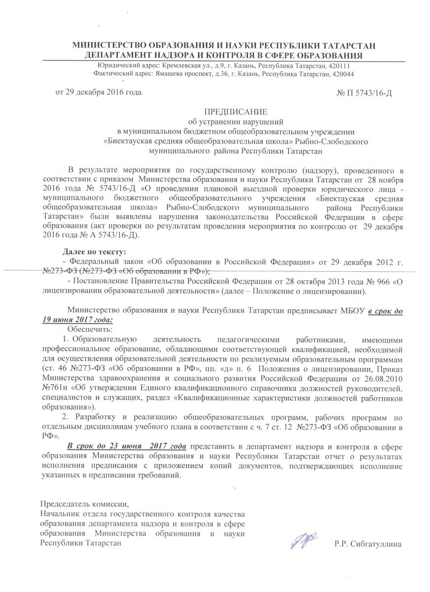 ПРЕДПИСАНИЕ об устранении нарушений