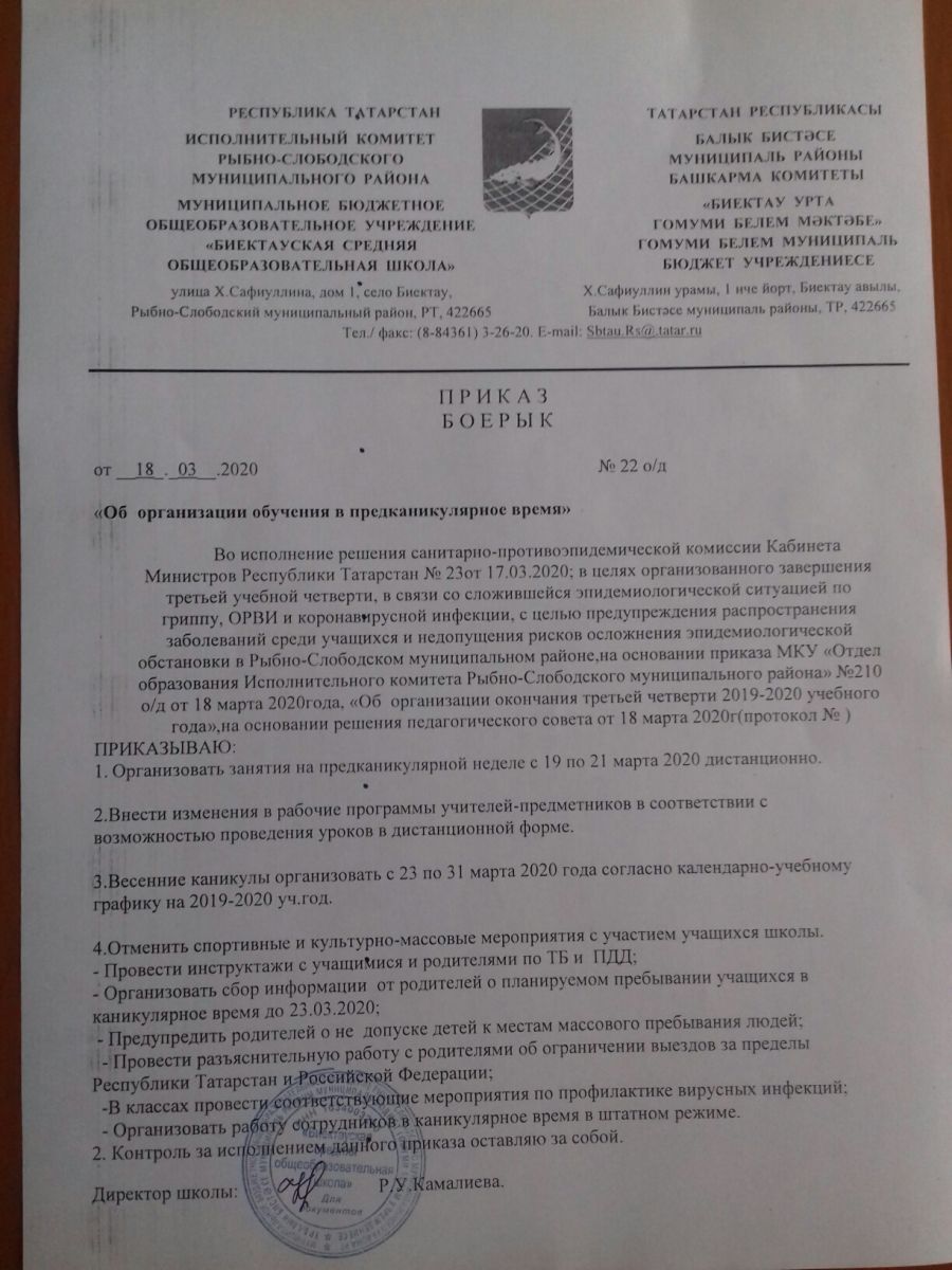 · Приказ Министерства образования и науки Республики Татарстан от 25.03.2020 № под-453/20