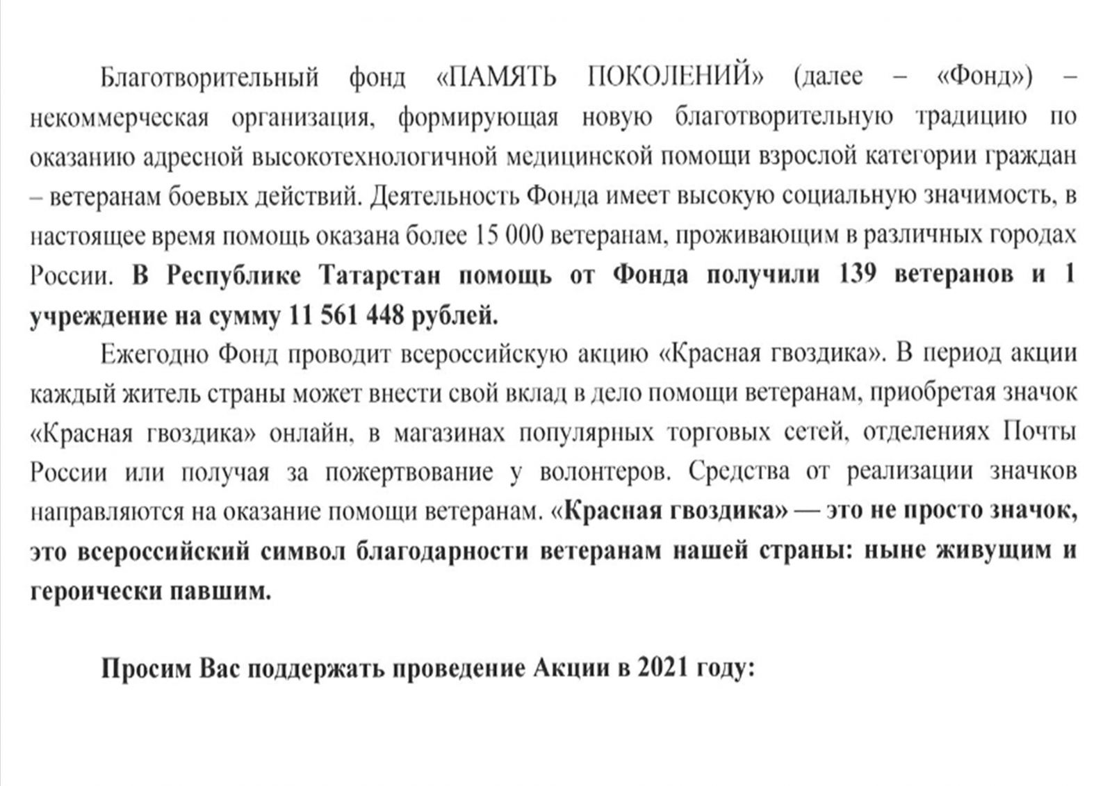 "Красная гвоздика" Обращение благотворительного фонда "Память поколений"