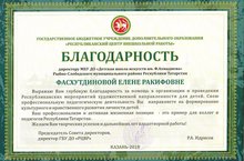 В соответствии с Планом мероприятий ГБУ ДО «Республиканский центр внешкольной работы» с педагогическими работниками дополнительного образования детей на 2017-2018 учебный год 29 мая 2018 года в 10.00 часов на ВЦ «Казанская ярмарка» состоялось республиканское семинар-совещание директоров образовательных организаций дополнительного образования на тему «Оценка деятельности образовательных организаций дополнительного образования в 2017-2018 учебном году». В работе семинара-совещания приняли участие 96 директоров образовательных организаций дополнительного образования. Директору нашей школы Фасхутдиновой Елене Ракифовне объявлена благодарность от имени руководства РЦВР. Поздравляем!