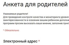 Уважаемые родители! Фонд новых форм образования созданный при Президенте Российской Федерации, при поддержке Республиканского центра внешкольной работы Министерства образования и науки Республики Татарстан проводит анкетирование для родителей обучающихся по дополнительным общеобразовательным программам. Просим Вас принять участие в данном мониторинге и заполнить анкету по ссылке до 10 ноября. https://docs.google.com/forms/d/e/1FAIpQLSdlxw0QAlRWUS6eUPKBMoUiQ3Mikly5H4D2HuBh4RyGGGMw7Q/viewform?usp=sf_link