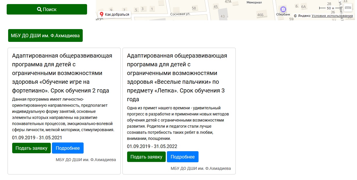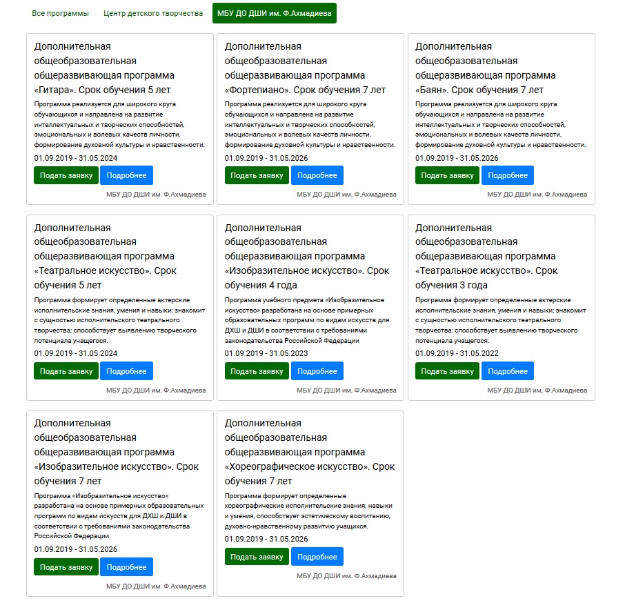 (Скриншот Навигатора ДО РТ с образовательными программами ДШИ им. Ф. Ахмадиева)