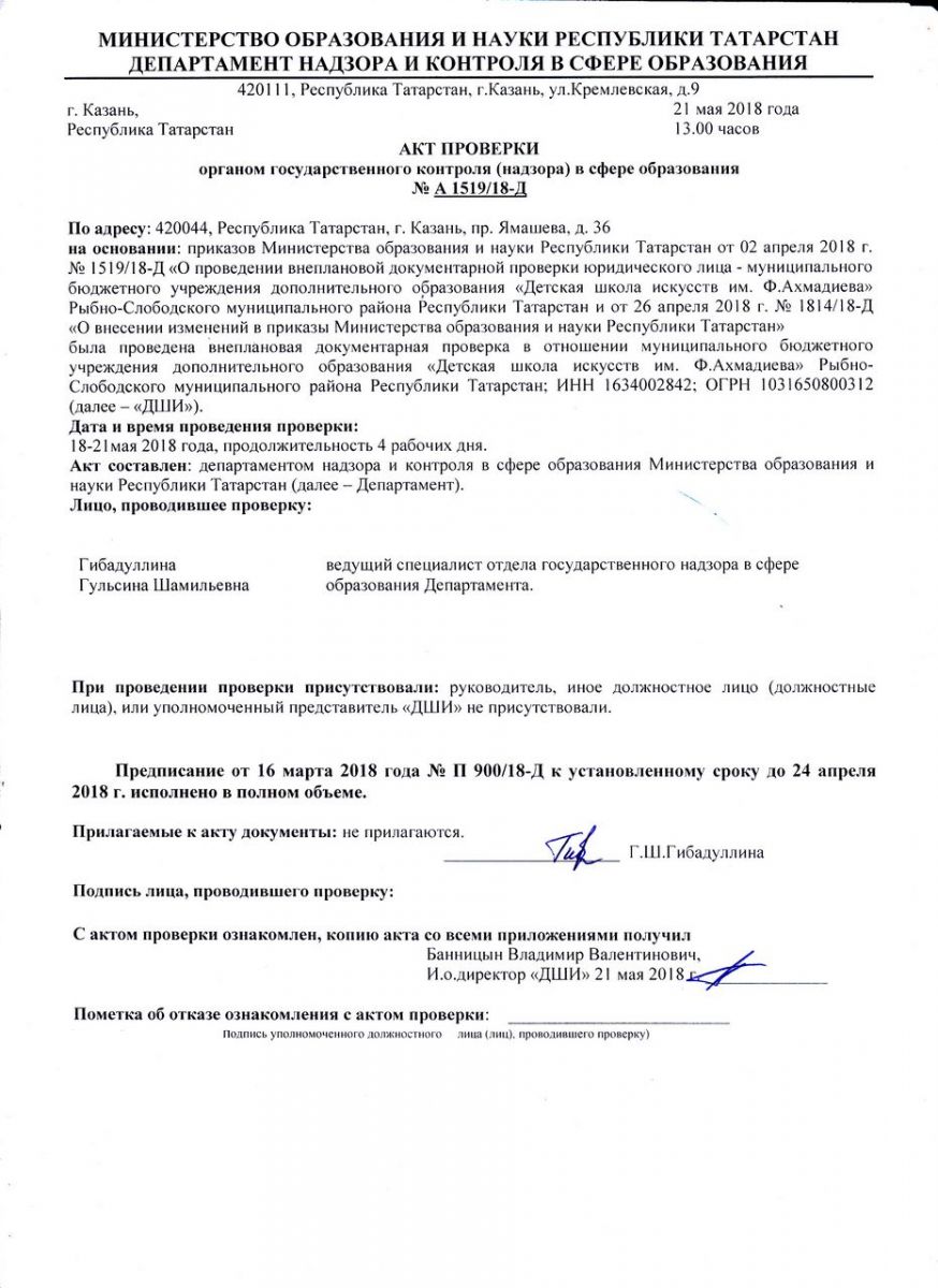 Акт проверки № А1519/18-Д