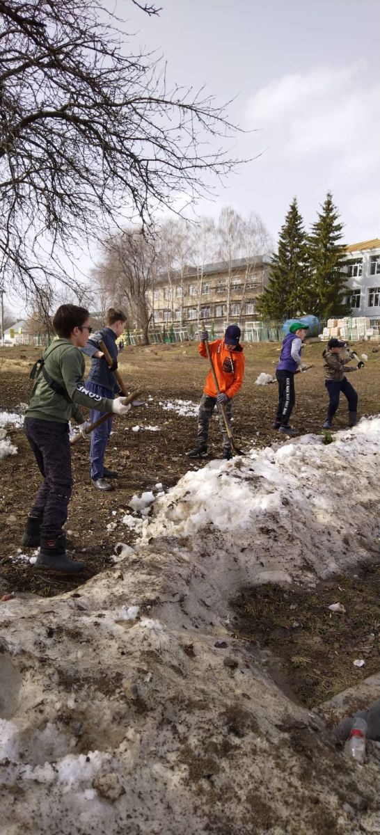 Сегодня учащиеся 6Б класса дали старт санитарно-экологическому двухмесячнику по очистке и благоустройству прилегающей территории. Ребята привели в порядок территорию автостоянки, раскидали остатки снега и убрали мусор.