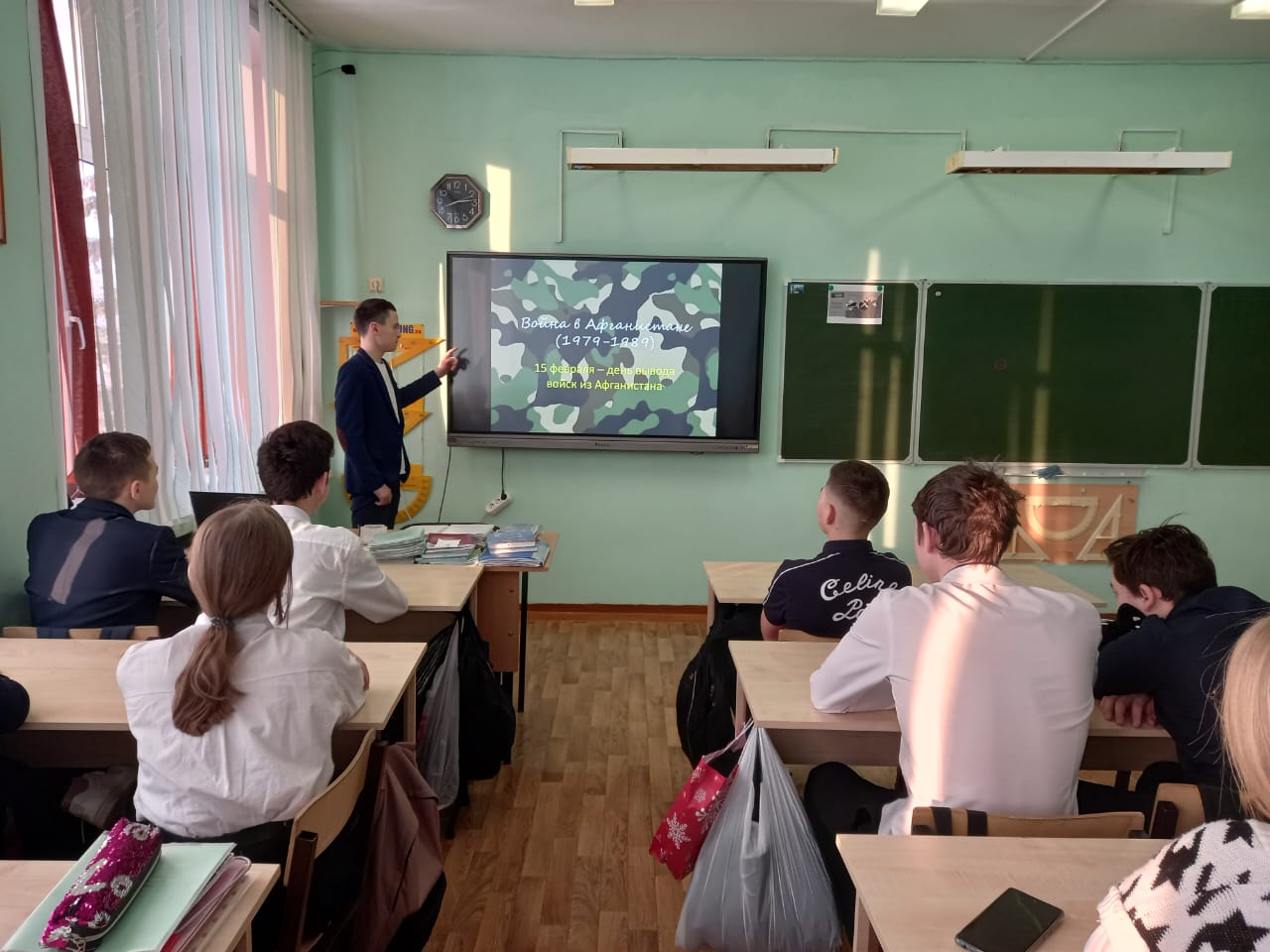 15 февраля исполняется 34 года со дня вывода Советских войск с территории Афганистана. К этой памятной дате в гимназии прошли уроки мужества «Афганистан – живая память». На уроке Мужества учащиеся познакомились с историей Афганской войны, узнали о причинах начала ни кем необъявленной Афганской войны и ее продолжительности, о невосполнимых потерях советских войск, о наших земляках, которым судьба предначертала жестокую участь — сгореть в огне чужой войны и которым уже никогда не суждено переступить порог родного дома.