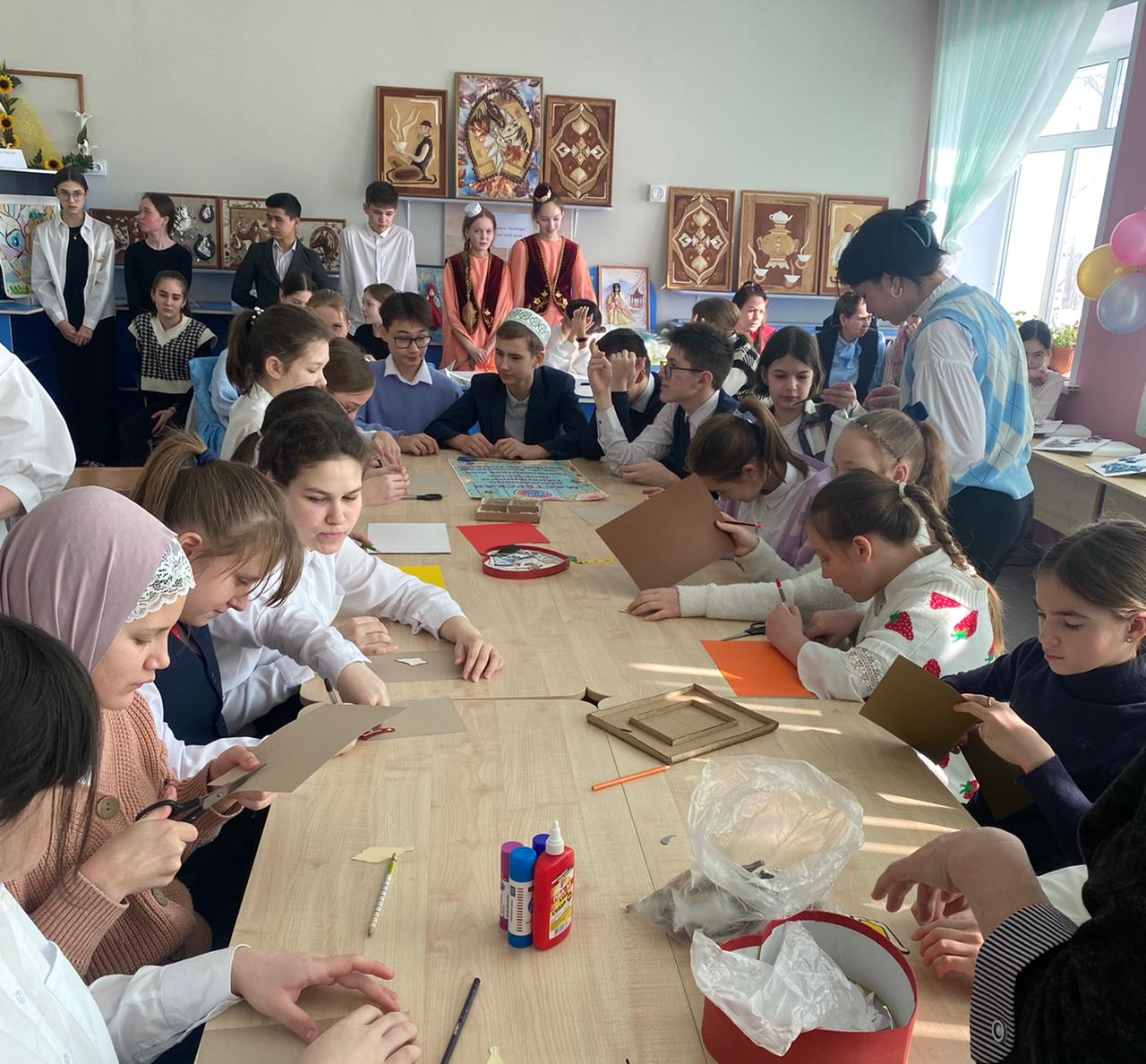 28 февраля в рамках недели татарского языка и литературы, ИЗО, музыки и технологии была организована творческая выставка учителя школы искусств Якуповой Ф.Х. На этой встрече Фания Хурматулловна показала свои работы и провела мастер-класс с учащимися гимназии.