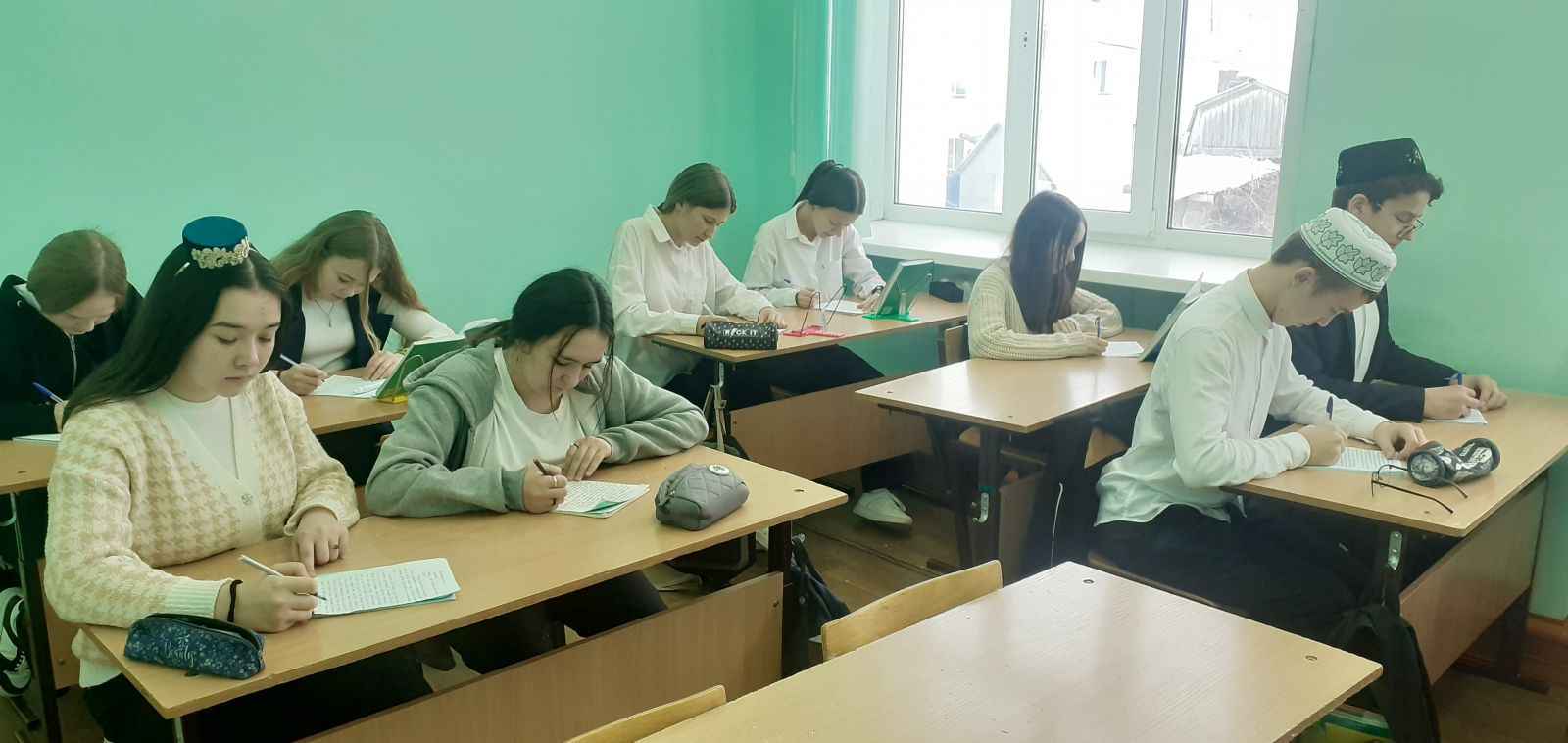 25 ноябрь көнне гимназиядә Татарча диктант Яз Дөньякүләм белем тикшерү акциясе үткәрелде. Акциянең максаты – татар теленә кызыксынуны арттыру, әдәби телдә дөрес сөйләм һәм дөрес язу күнекмәләрен үстерү, орфографик һәм грамматик хаталар ясамыйча язу теләге уяту, татар теле белгечләрен һәм туган тел (татар теле) укытучыларын тагын да популярлаштыру. Акциядә ата-аналар һәм укучылар теләп катнаштылар.25 ноября в гимназии прошла ежегодная Всемирная образовательная акция «Татарча диктант Яз». Целью этой акции является воспитание интереса к татарскому языку , развитие навыков правильной речи и письма на литературном языке, желание писать без орфографических и грамматических ошибок..jpg)