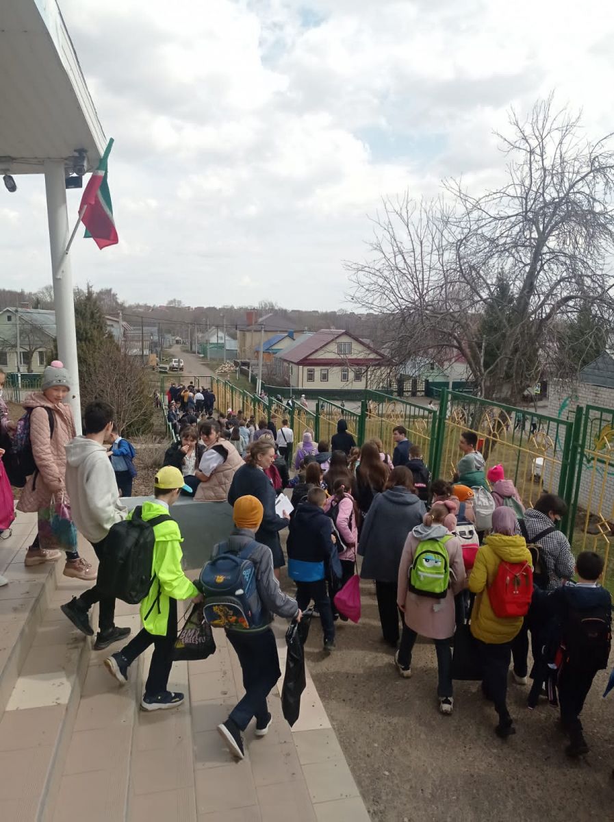 25нче апрель көнне Балык Бистәсе 1нче гимназиясендә укучылар һәм хезмәткәрләр өчен эвакуация өйрәнүләре үтте.