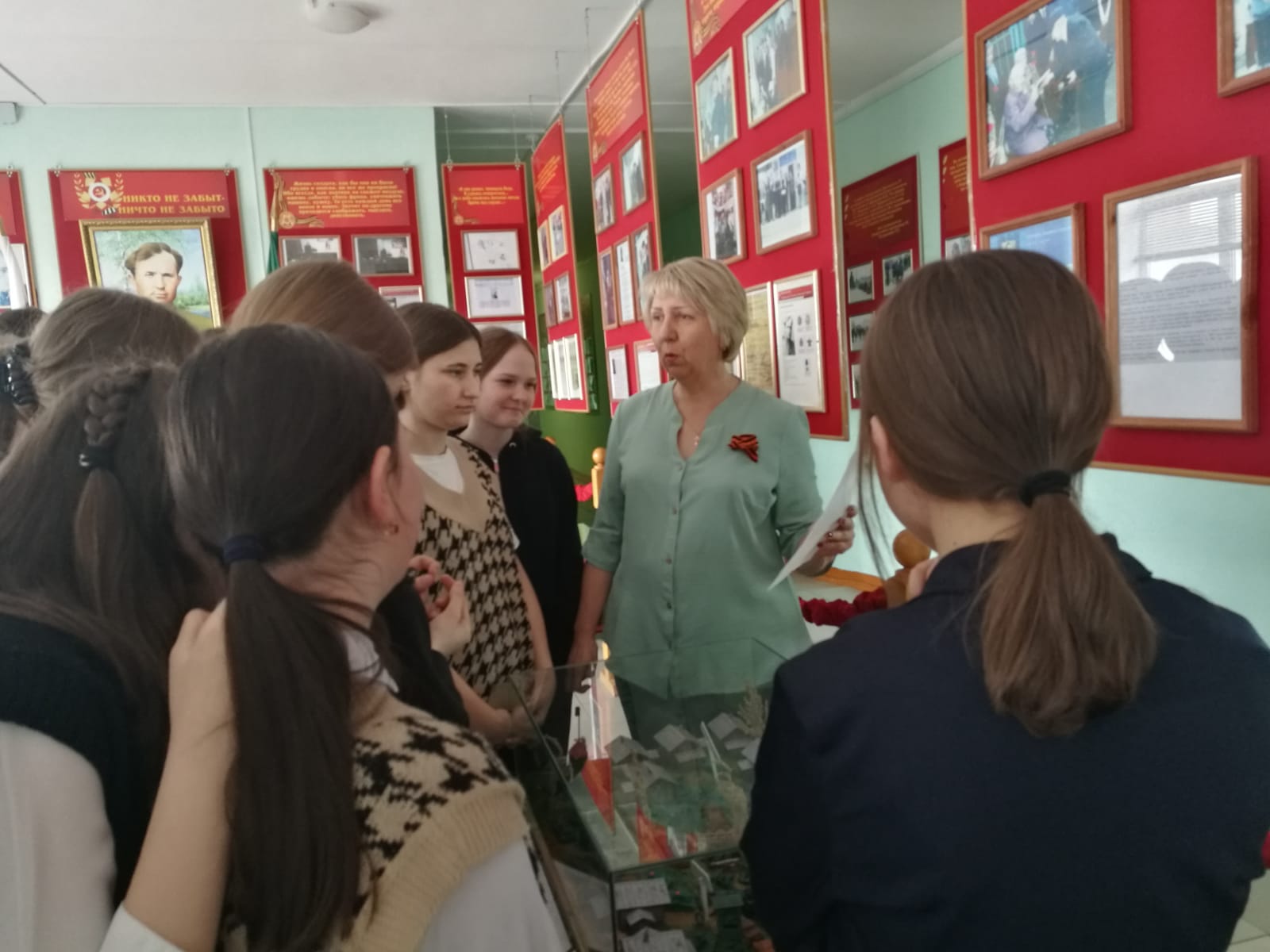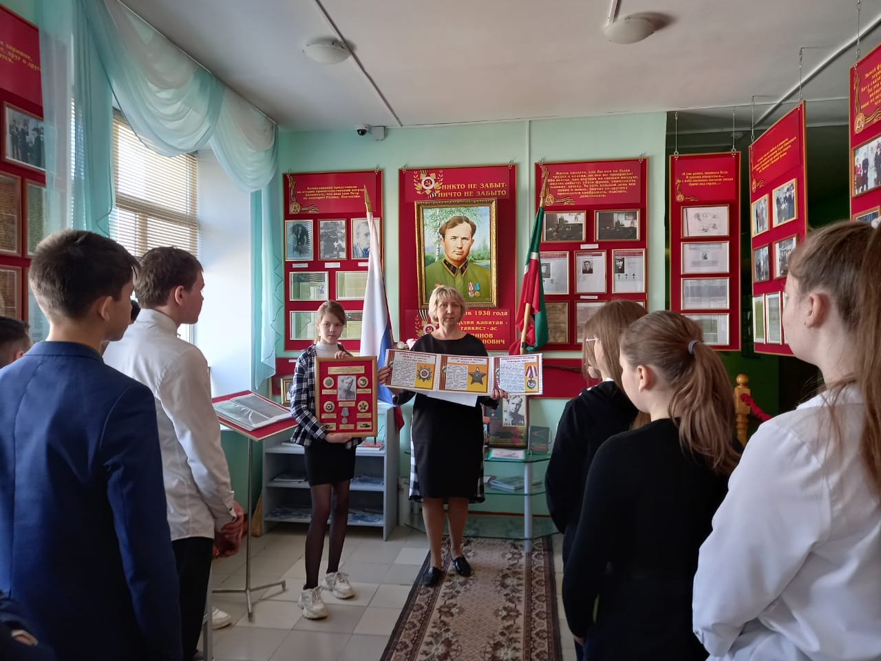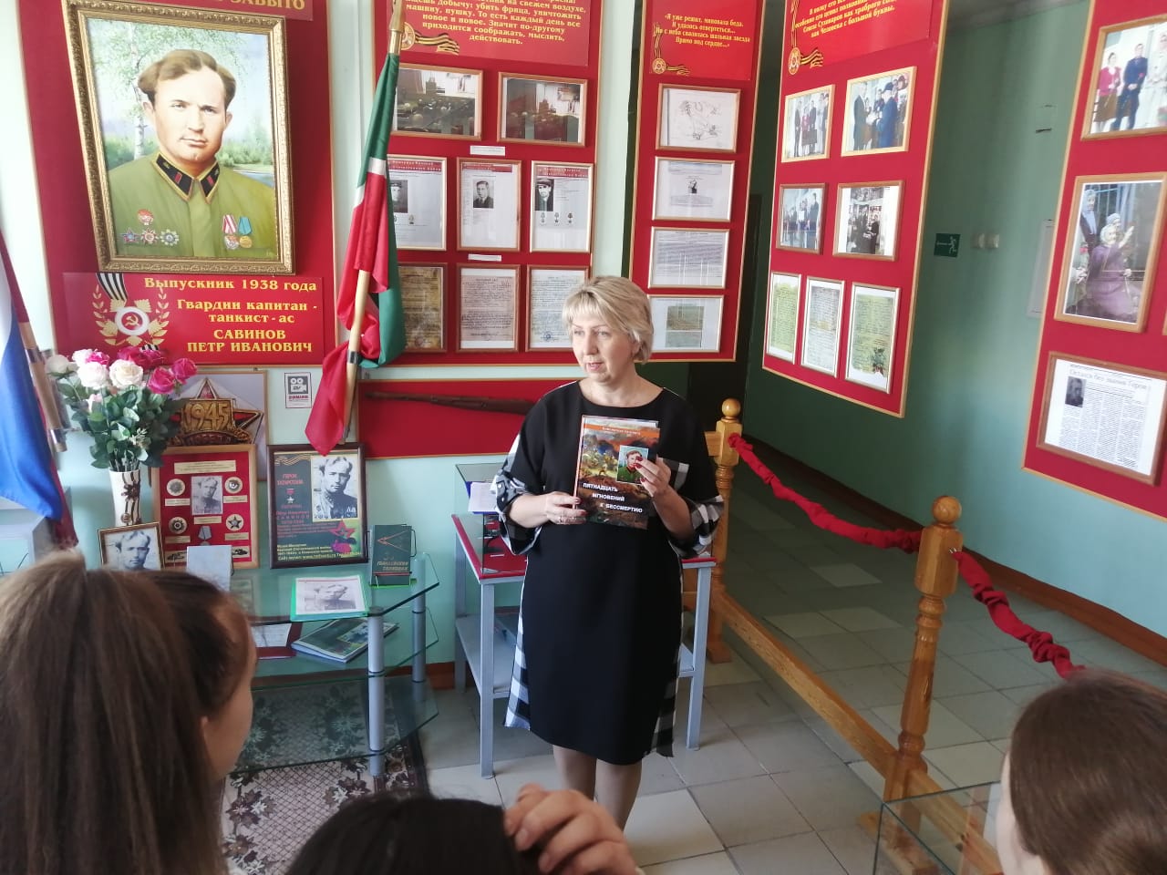 Бөек Җиңүнең 77 еллыгын бәйрәм итү уңаеннан Савинов П.И. исемендәге мәктәп музеена экскурсияләр оештырылды (җитәкчесе Чеботарева Н.Н.) Укучылар Наталья Николаевна чыгышын бик кызыксынып тыңладылар, сораулар бирделәр. Геройлар турында хәтер мәңгелек!