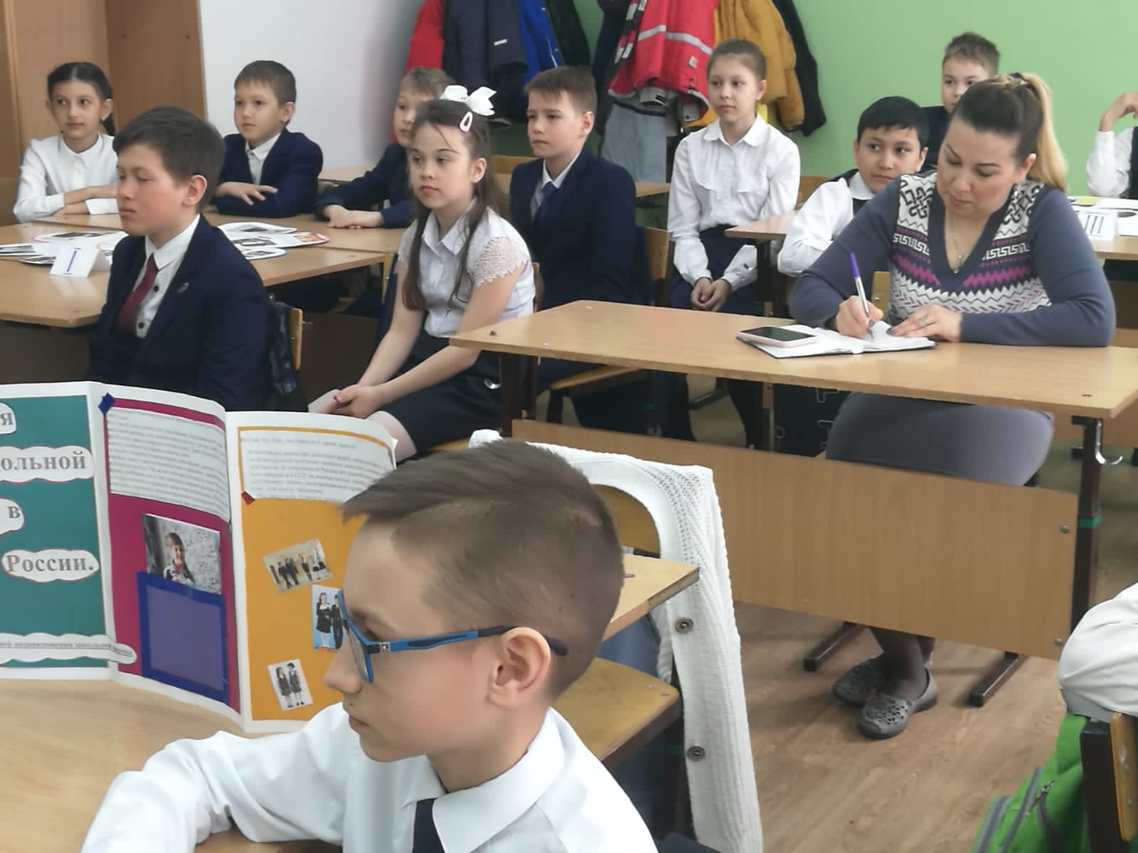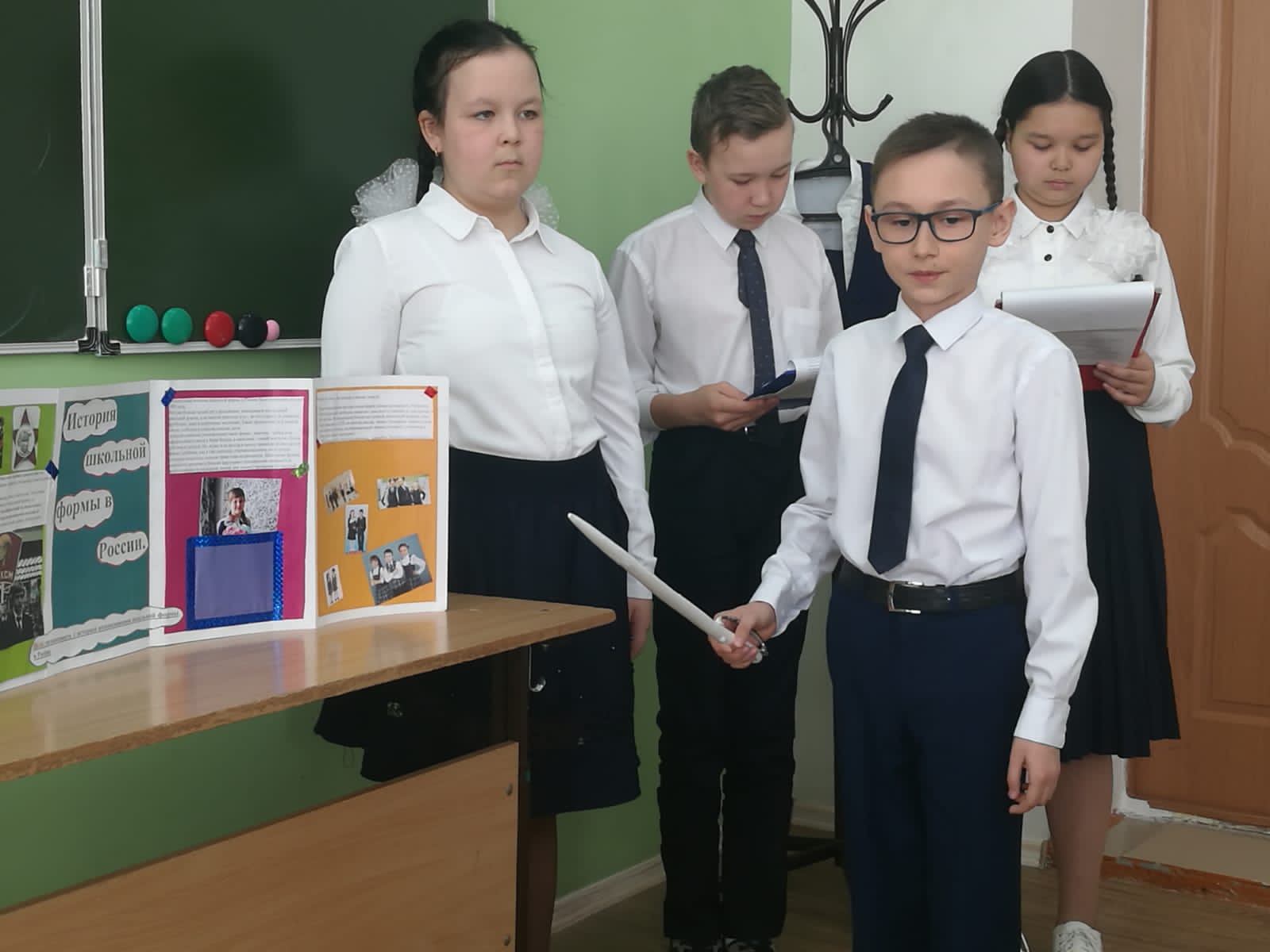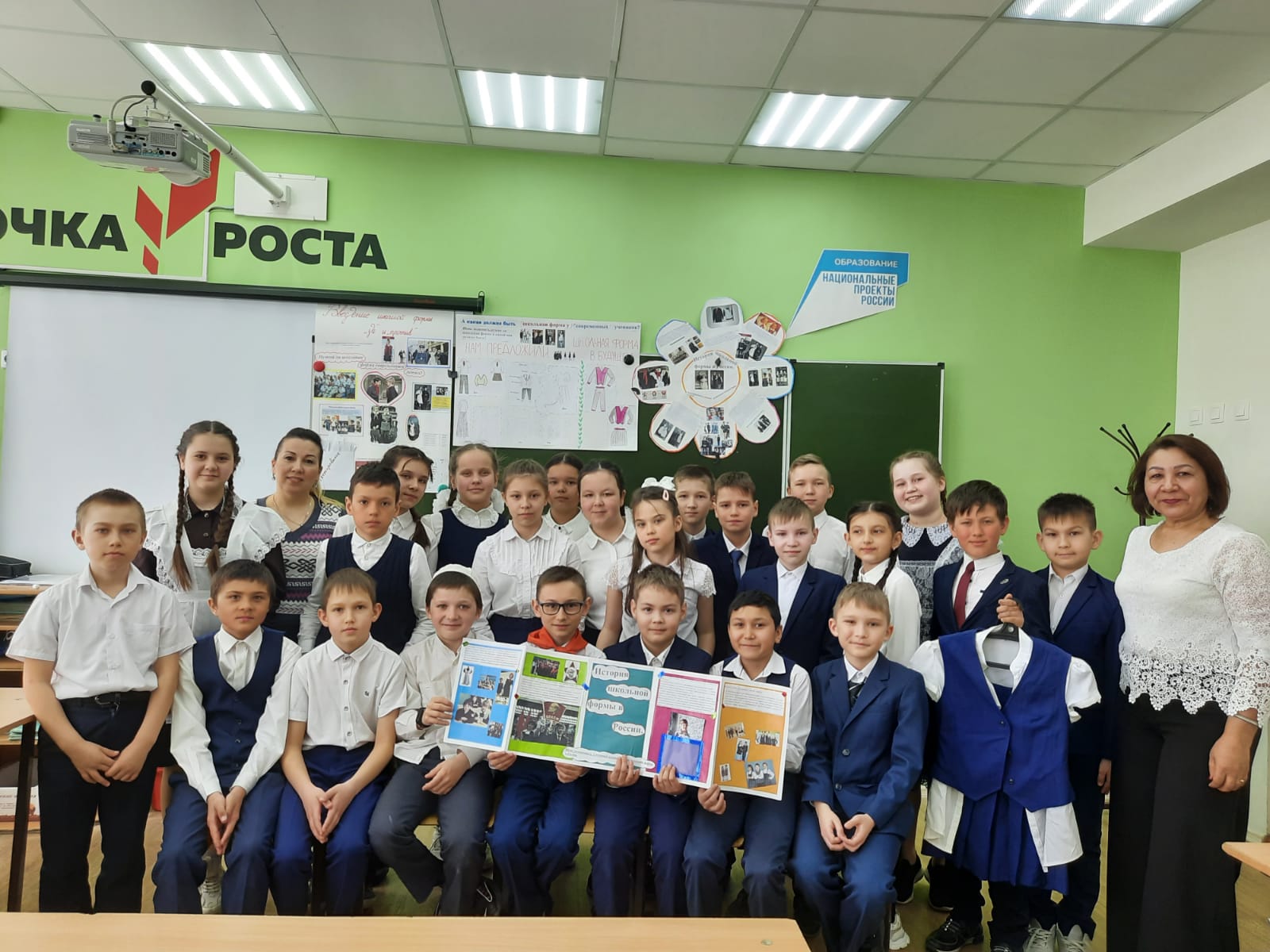 4 Б сыйныфы укучылары «Россиядә мәктәп формасы: барлыкка килүдән бүгенге көнгә кадәр» темасы буенча проектлар якладылар. Алар форманың барлыкка килү тарихын, аның төрләрен өйрәнгәннәр. Мәктәп формасы укучыларны тәртипкә сала дип ышандырдылар.